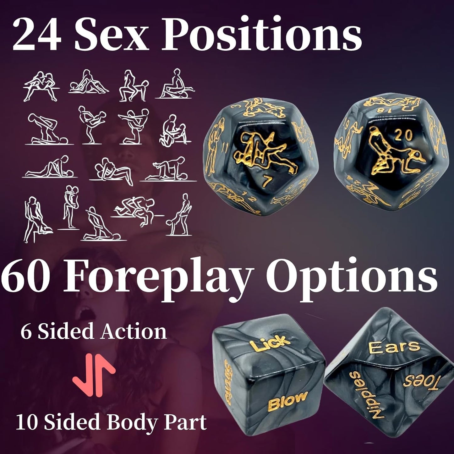 With 6 actions and 6 body parts, each roll creates a fresh, fun foreplay prompt to spice up your intimacy.