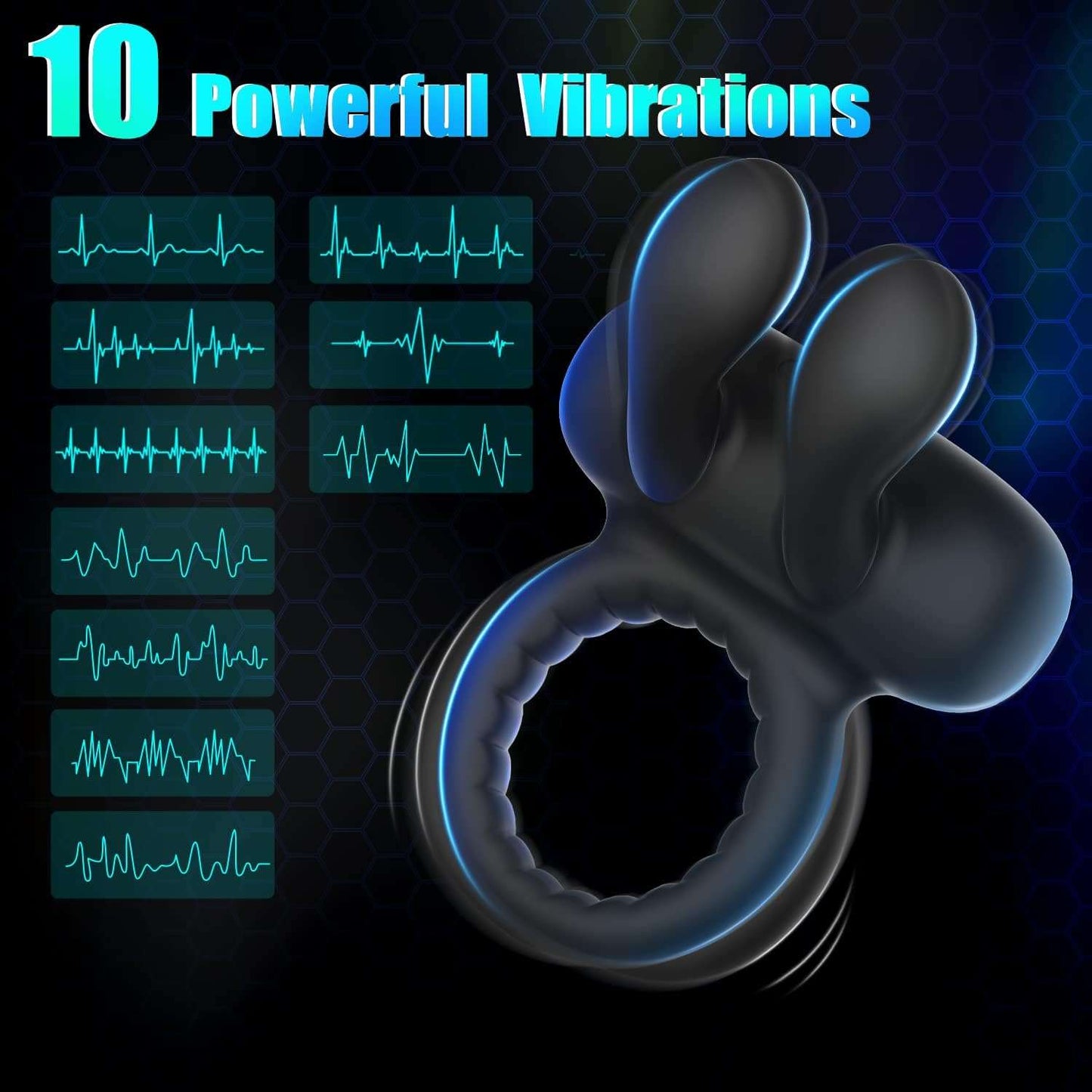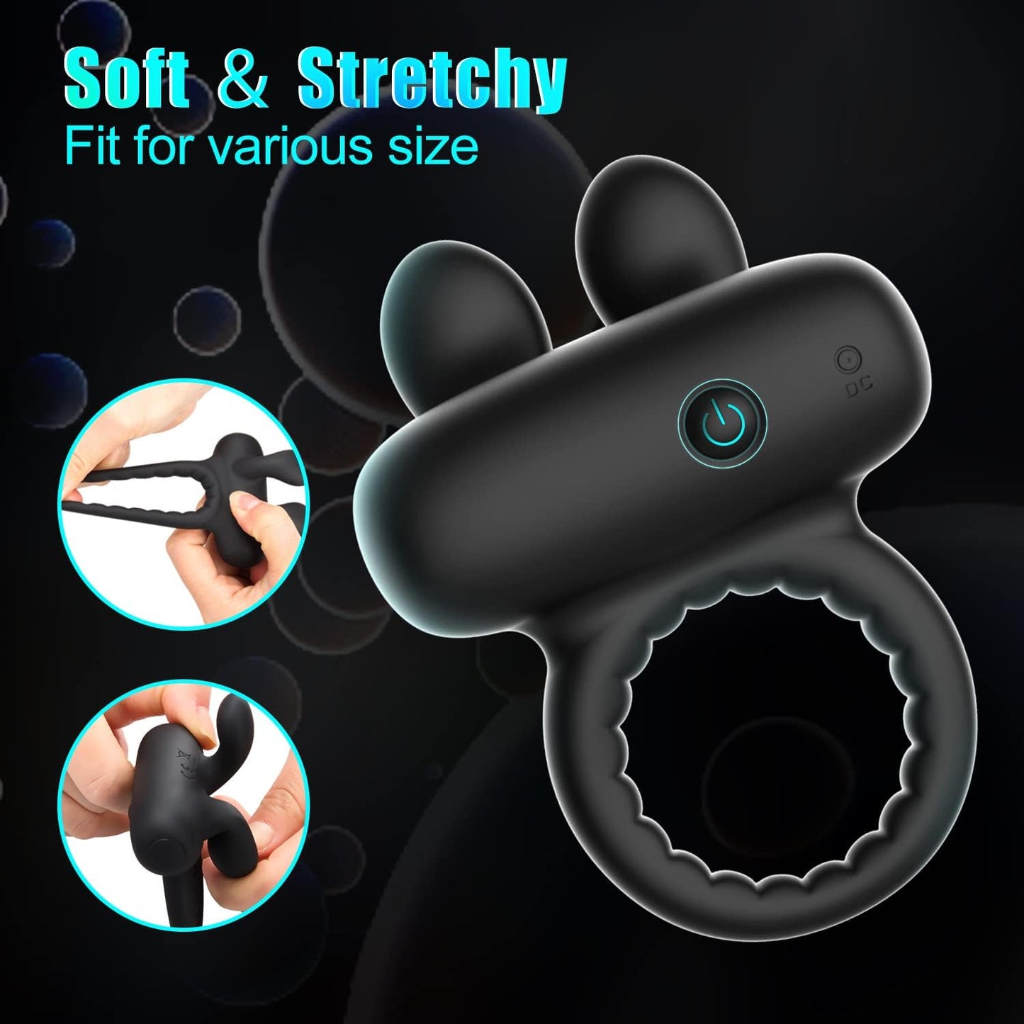 2-in-1 Dual Stimulation: Combines a vibrating cock ring for erection support with soft bunny ears that tease the clitoris or other erogenous zones.