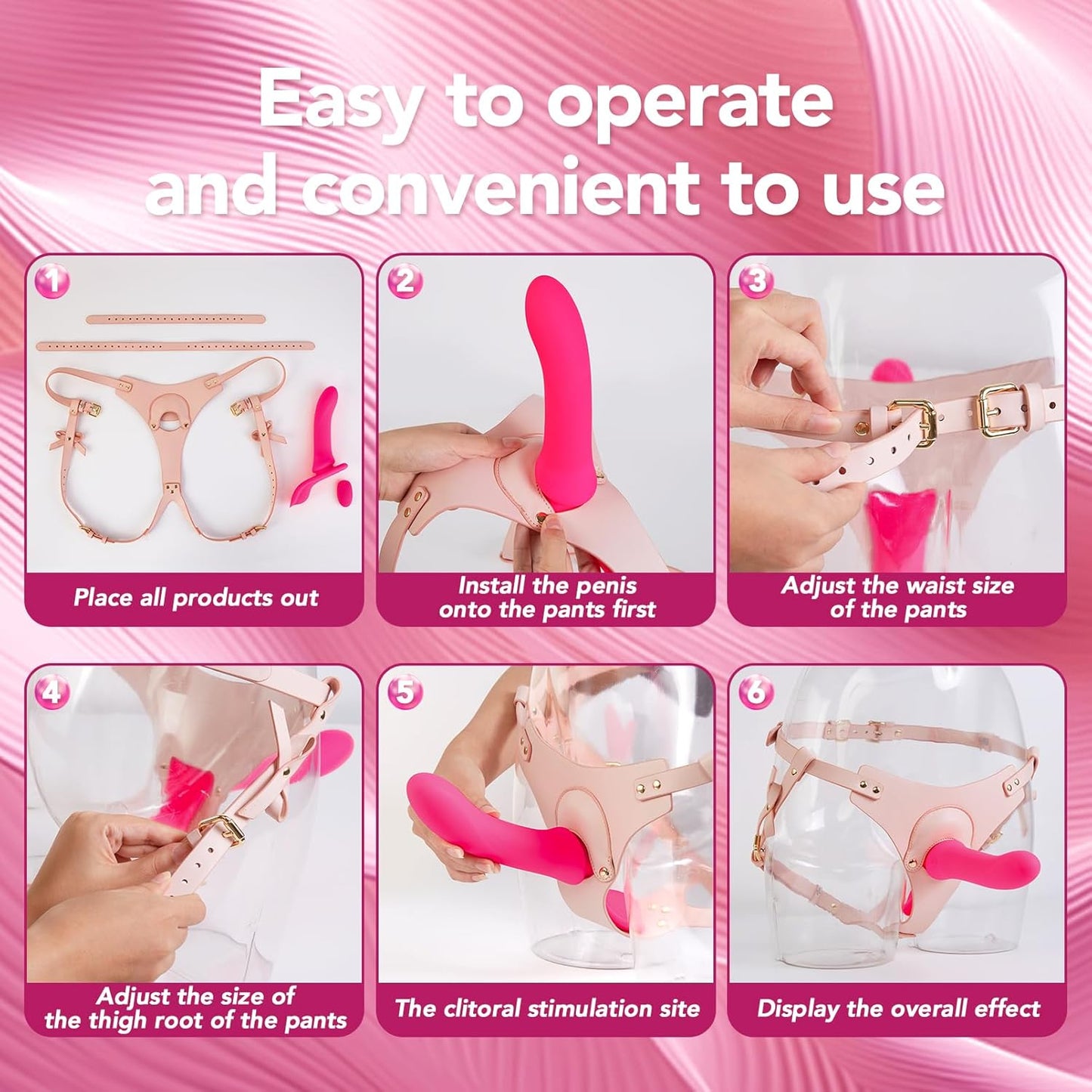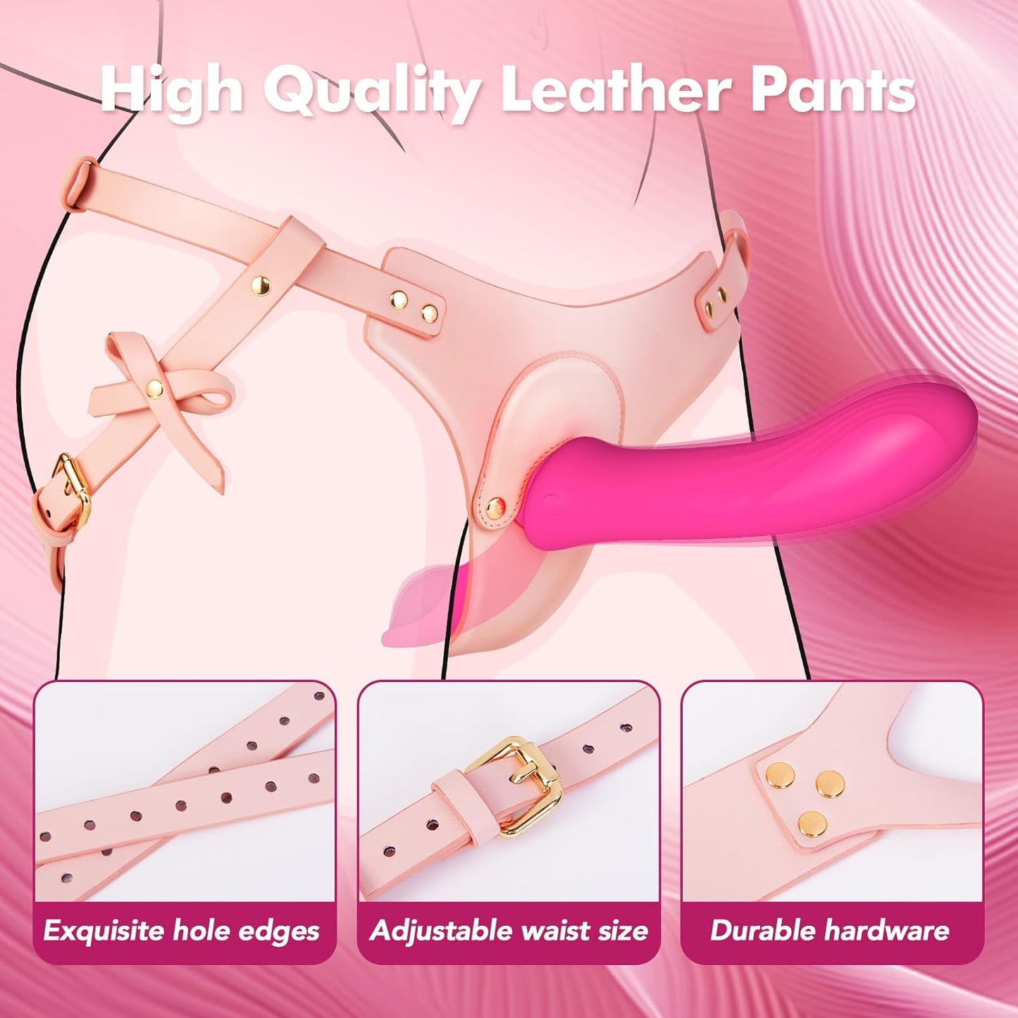 Design: Aesthetic bow harness with ergonomic, curved dildo