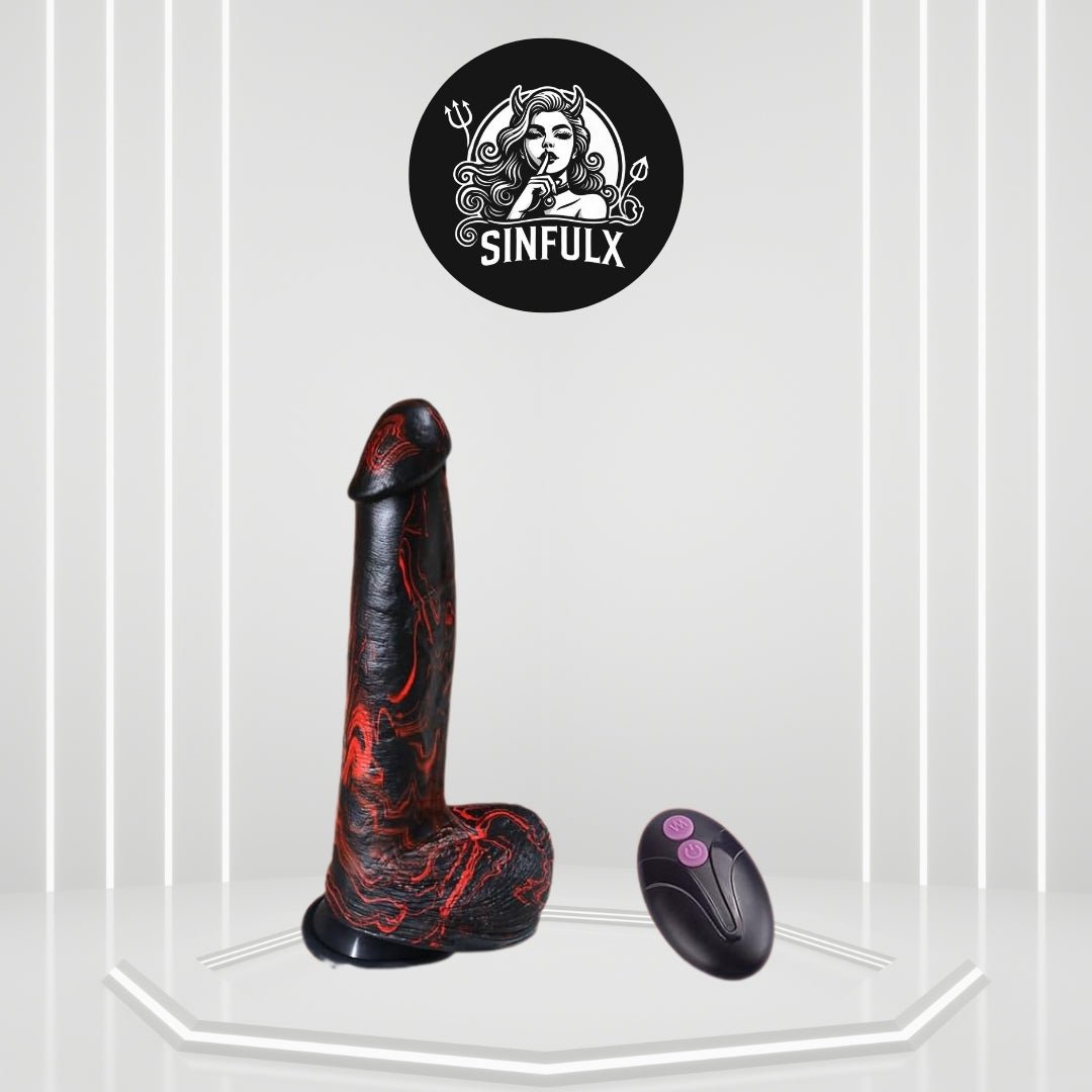 Fantasy-Inspired Design: Striking volcanic black and red colors paired with a realistic mushroom head and textured shaft, crafted for bold visual and tactile pleasure.