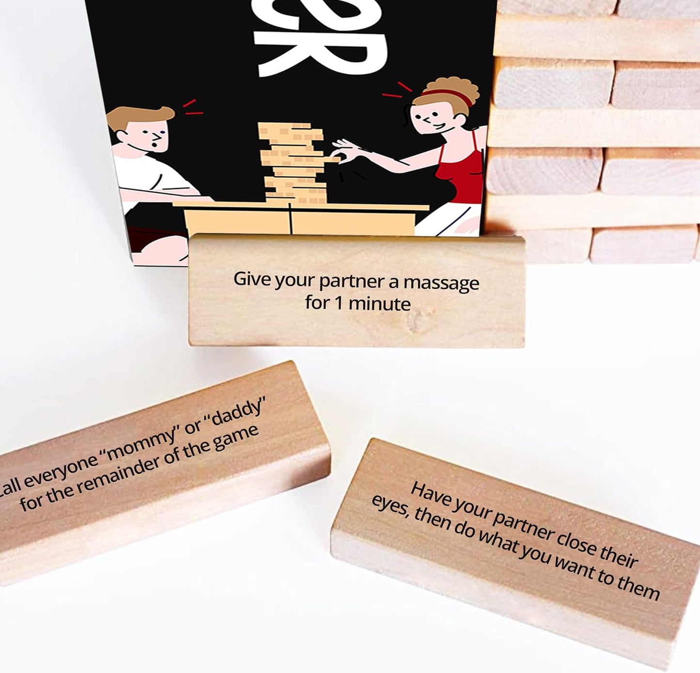 A fresh take on the classic stacking game—each block reveals a flirtatious or daring challenge designed to deepen intimacy and spark laughter.