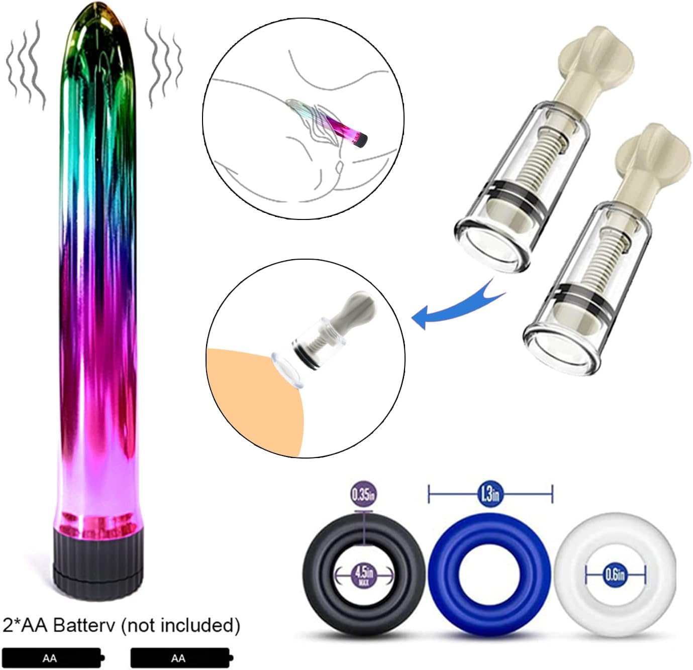 All products are for adult use only. Keep out of reach of children and pets. Use as directed and stop if any irritation or issues occur. Clean items before and after use. Avoid prolonged submersion despite waterproof design.
