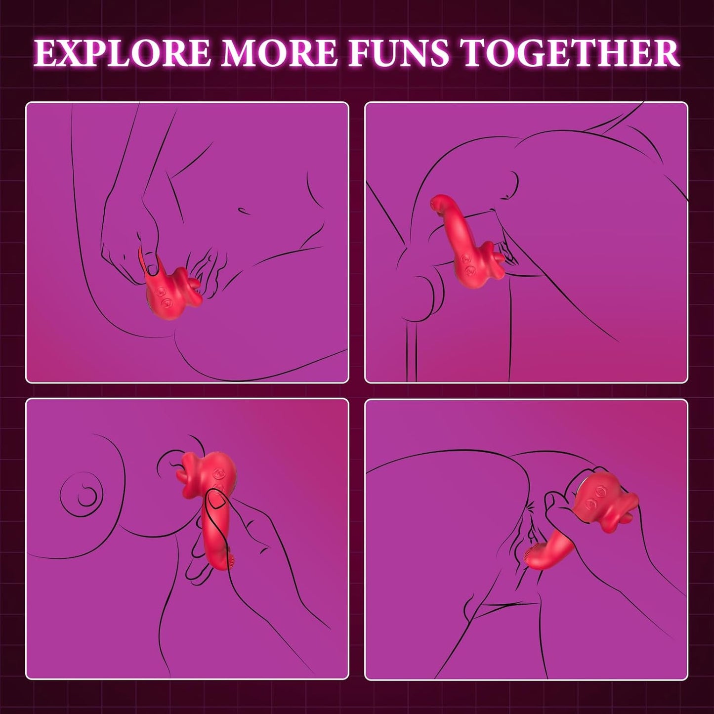 Dual Stimulation: Built-in tongue-like clitoral vibrator and testicle massager work simultaneously to heighten pleasure for both partners.
