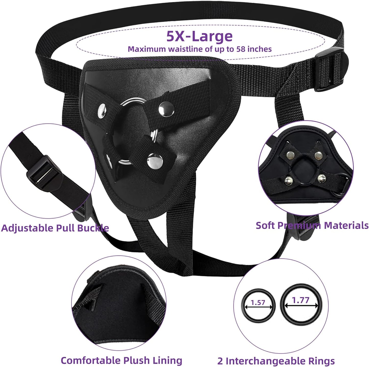 With fully adjustable straps that expand up to 58", this strap-on set is designed to accommodate all body types with a snug, secure fit.