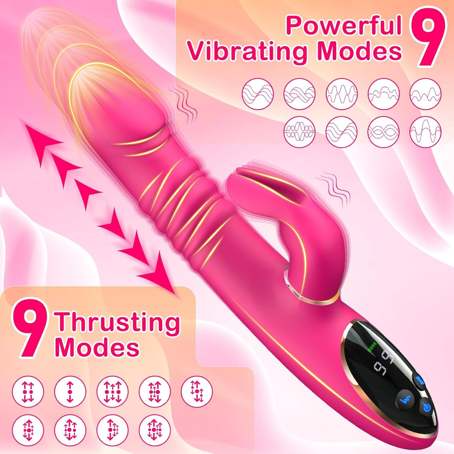 Customizable Experience: Mix and match 9 thrusting and 9 vibrating modes to discover your perfect pleasure combination.