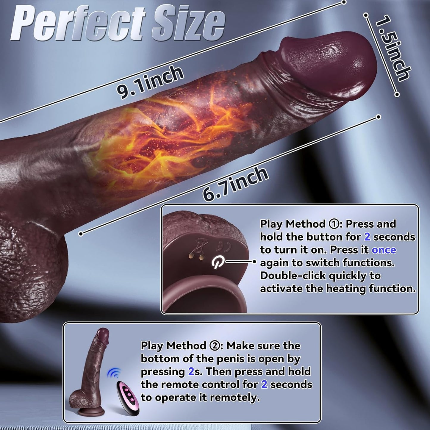 Cycle through thrusting, vibrating, and heating modes with the remote.