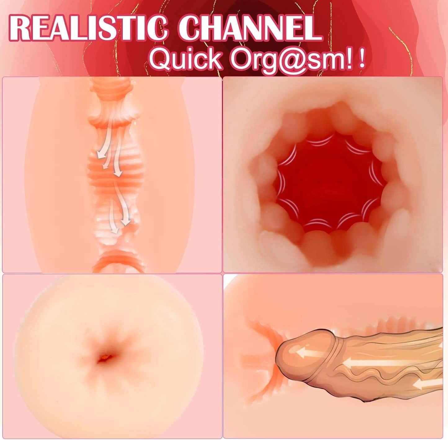 Realistic 3D Internal Texture: Multi-layered spiral folds, ridges, and suction simulate oral sensations for full shaft stimulation.