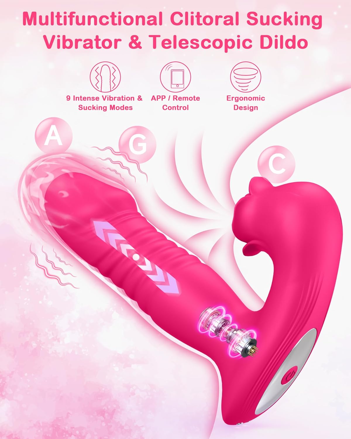 Dual Pleasure Technology: Combines rhythmic suction for clitoral stimulation and a thrusting vibrator for deep G-spot satisfaction—all in one wearable device.
