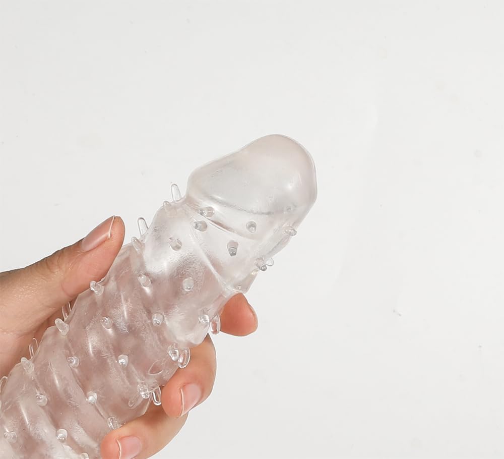 The spikes are a bit much. Maybe would be better without the spikes. Other than that, it is a soft extender toy, ringed texture, stretchy. Comes in a sealed bag for your protection, clear on one side and foil on the other. Easy to wash clean material.
